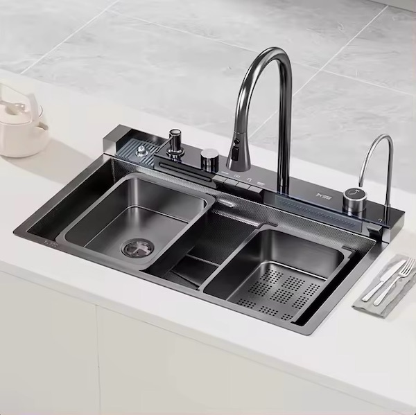 Opremljena je vodopad slavinom za brzo ispiranje, izvlačnom klasičnom slavinom, posebnom slavinom za filtriranu/pijaću vodu i ugrađenim ispiračem za čaše, što omogućava maksimalnu praktičnost u svakodnevnoj upotrebi.