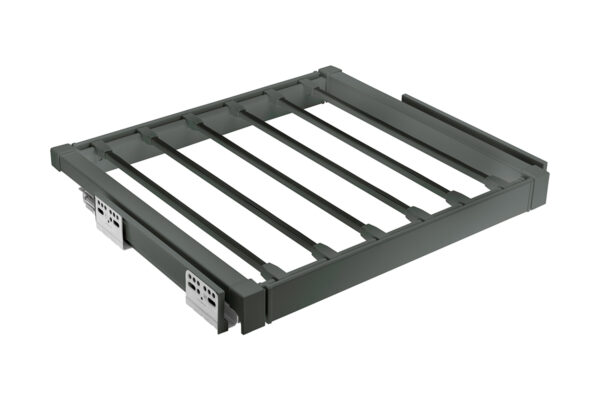 Izrađen je od čvrste metalne konstrukcije, u modernoj sivoj/antracit boji, koja se lako uklapa u savremene ormare. Šipke su raspoređene tako da pantalone ostaju ravne i bez gužvanja, dok stabilan sistem obezbeđuje dugotrajnu i pouzdanu upotrebu.