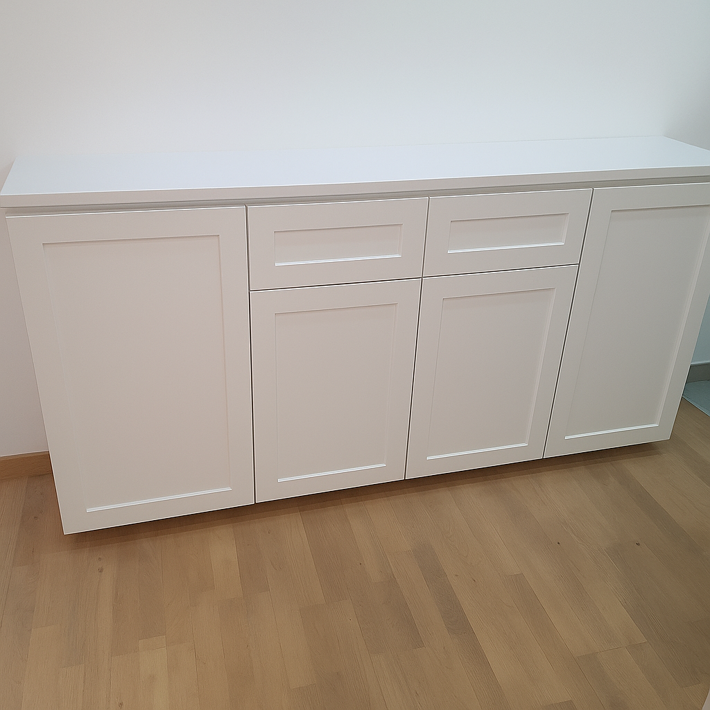 Izrađena od visokokvalitetnog medijapana, u potpunosti je farbana u belu boju