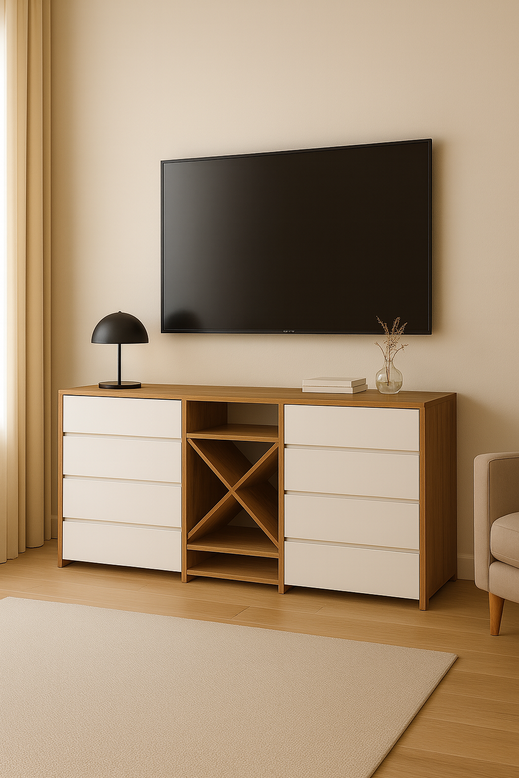 Centralni deo sa X pregradom donosi dodatnu funkcionalnost i dekorativni akcenat.