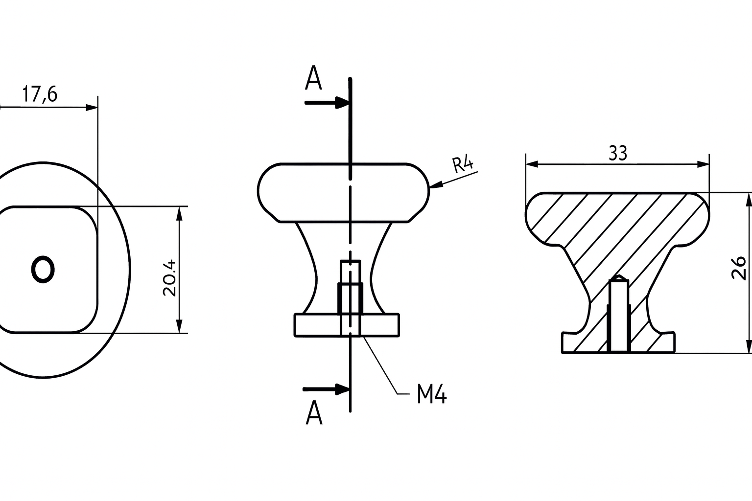 Elegantno mat crno dugme sa glatkim zaobljenim vrhom i stabilnom četvrtastom osnovicom.