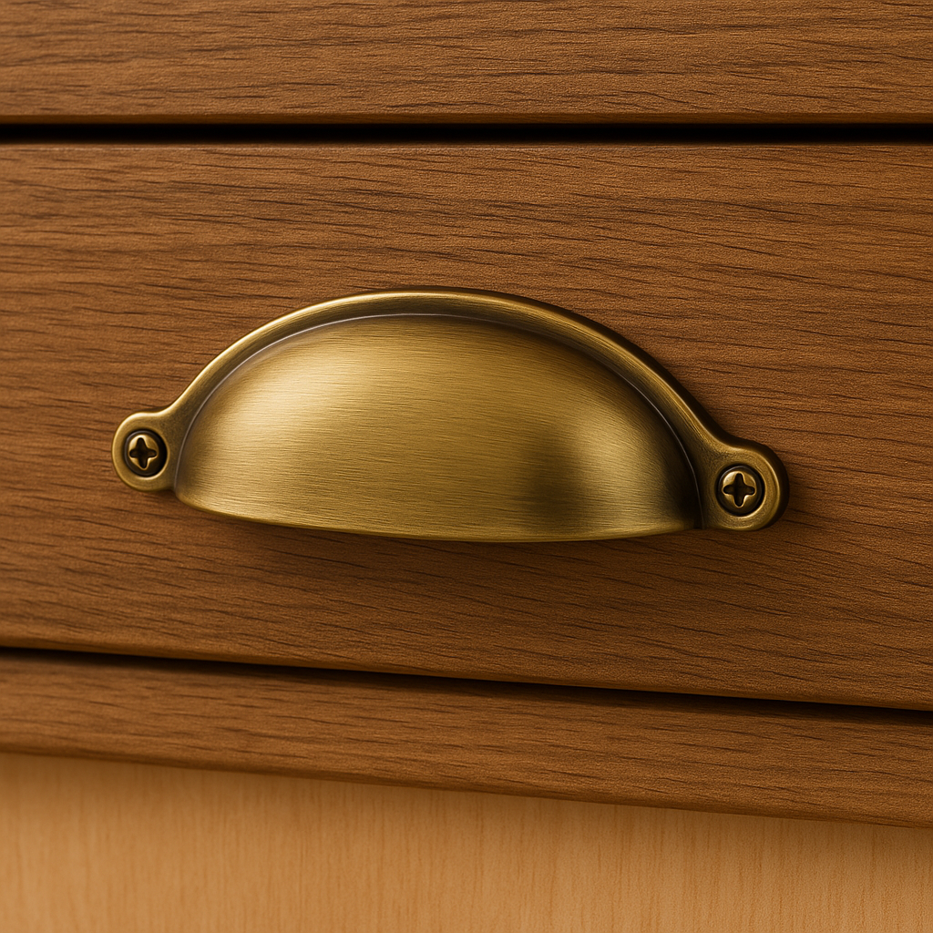 Ručkica Marsa je metalna školjkasta ručka u boji antik zlata.