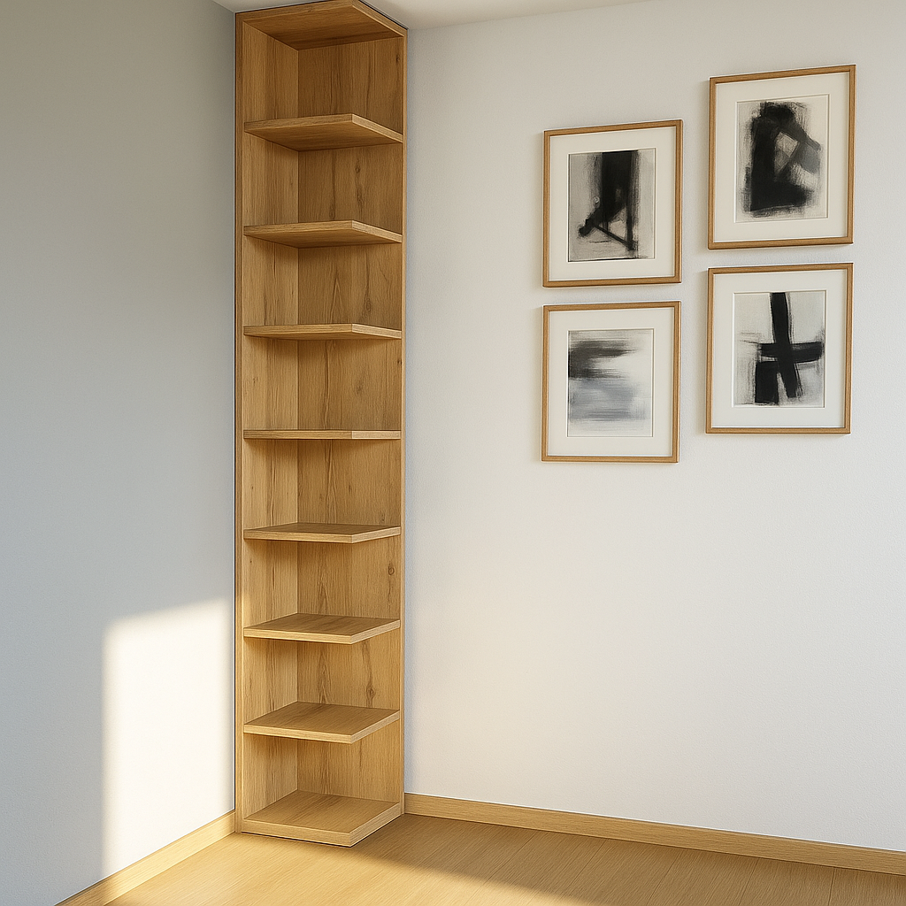 Praktična ugaona polica izrađena je od kvalitetne iverice u prirodnom drvenom dezenu i dizajnirana tako da maksimalno iskoristi prostor.