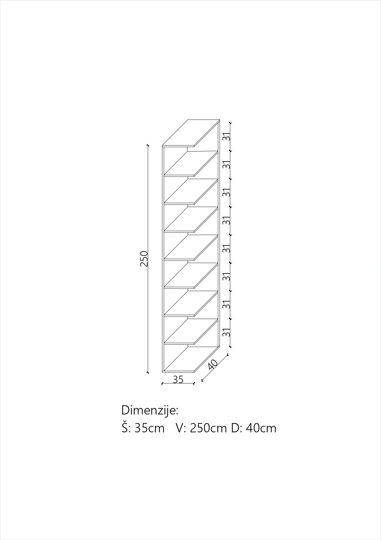 Dimenzije(cm) 35x40x250