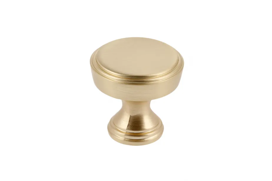 Zlatno dugme SONET ističe se svojim klasičnim, profinjenim oblikom i vrhunskom izradom. Gornja ploča je glatka i blago izdignuta, ukrašena suptilnim dekorativnim prstenom koji dodaje notu luksuza. Stabilno postolje je oblikovano u prefinjenu, blago suženu formu, sa ukrasnim profilom pri dnu, što kompletnu ručku čini još elegantnijom.