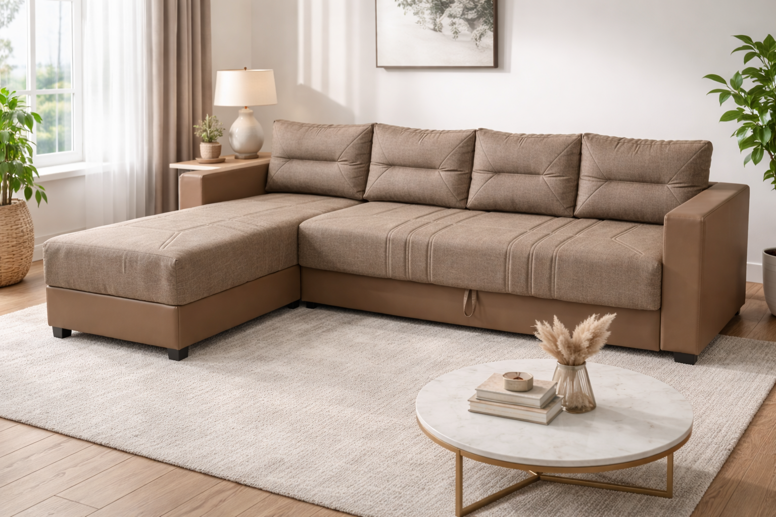 Ugaona garnitura Kombiko predstavlja savršen spoj funkcionalnosti i modernog dizajna, idealna za savremene dnevne boravke.